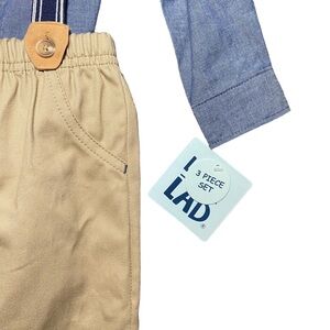 NWT Little Lad Boys Outfit Bundle Pants Suspenders Button Up Shirt Shirt 12mo