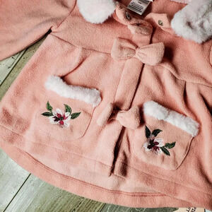 ***Pink Coat with Faux Fur | Size 18M | Pockets | Floral Embroidery | Bows | Snap Button Closure | Super soft!