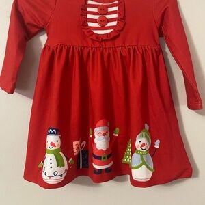 NWT boutique Christmas dress Red long sleeve buttery soft dress with Santa and snowmen on bottom Size 6 months Smoke free home