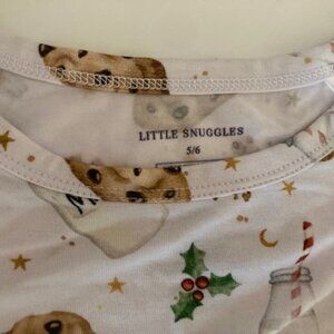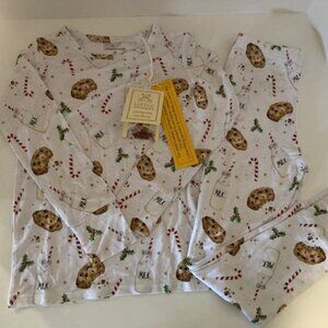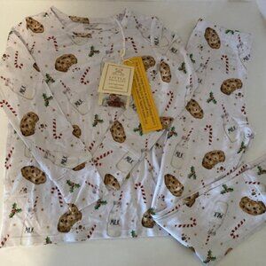 NWT Little Snuggles (Charlie's Project) bamboo 2-piece long sleeve/pants lounge set pajamas in the festive Holiday Milk & Cookies print in size 5/6.