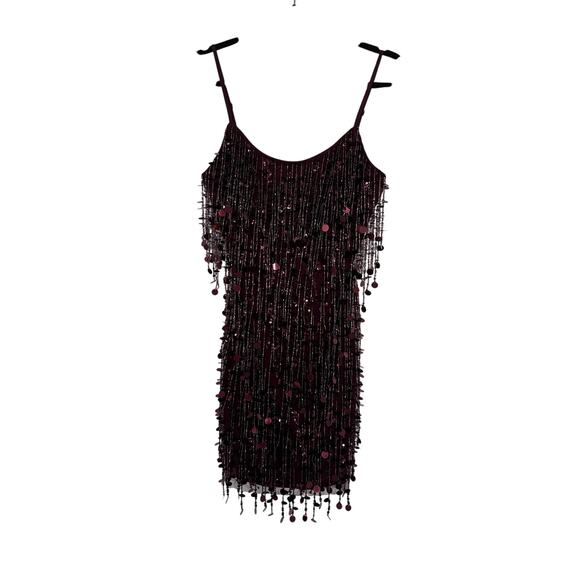 NWT Liv Foster Beaded Scoopneck Mini Dress in Blackened Red, 4