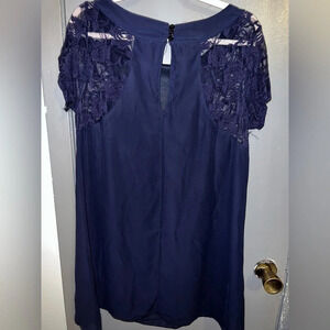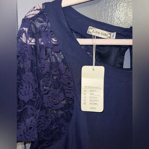 NWT Liva Girl dark Navy dress with lacy sleeves keyhole closure on back.
