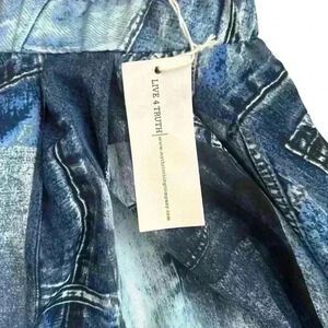 NWT Live 4 Truth Palazzo Straight Leg Print Maxi Pants Denim Design women Med.