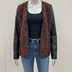 NWT Live a Little Women's Tweed Wool Red Leather Sleeve Cardigan Jacket XL