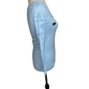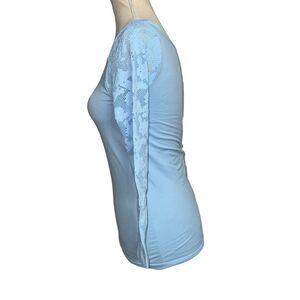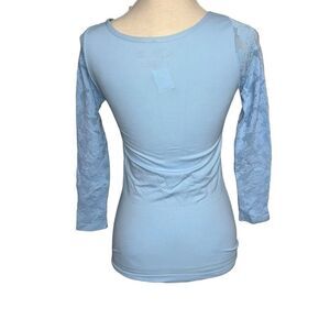 NWT Live Love Dream Solid Blue 3/4 half sleeve Active Stretchy Spandex Top M/L