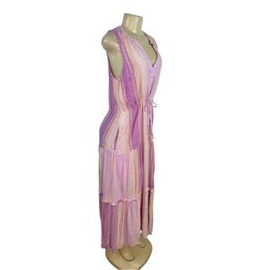 Keywords: maxi dress, sleeveless dress, striped dress, summer dress, casual dress, Liverpool Los Angeles, lavender dress, boho dress, bohemian dress, vacation dress, beach dress, size S dress, drawstring dress, tiered dress