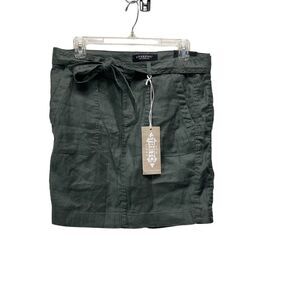 NWT Liverpool Los Angeles Stretch Linen Tie Front Skirt Stretch Olive Green Sz 8