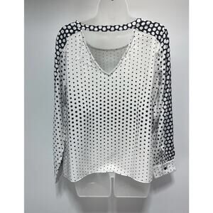 NWT Liverpool Los Angeles Women Black/ White Polka Dot Long Sleeve Blouse Size M