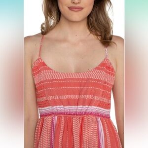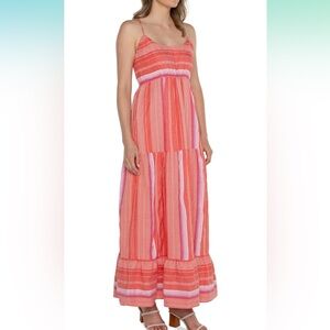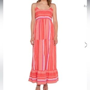 NWT Liverpool Los Angeles Racer Back Tiered Maxi Dress with Smocking in coral
