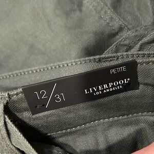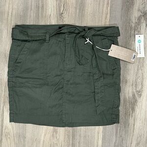 NWT Liverpool Olive Green Cargo Mini Skirt Belted Stretch Linen Size 12 Petite