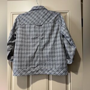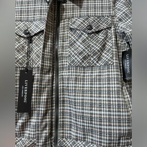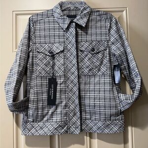 NWT Liverpool jacket. Sz small. Gray plaid. Pockets. Hidden zipper front. Fits slightly oversized. See measurements. Smoke free home