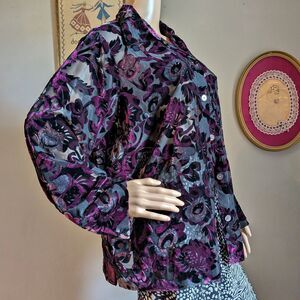 NWT Liz Claiborne Blouse Floral Velvet Burnout Whimsigoth Plus Size 1XP