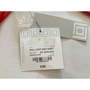 NWT Liz Claiborne Cotton Blend Roll Tab Button Down Shirt in Orange Blaze, M