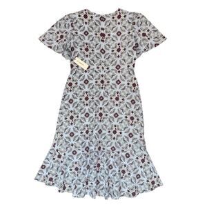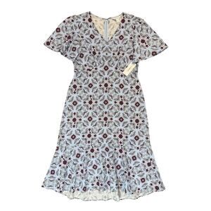 This NWT Liz Claiborne linen blend ruffle long midi dress in blue is a stylish and versatile piece perfect for various occasions such as travel, parties, or casual wear. The floral pattern, V-neckline, and flutter sleeves add a feminine touch to the dress, which features a zip closure for easy wear. Made from a comfortable linen blend fabric with a touch of rayon, this dress is machine washable for easy care. The fit & flare, shift, maxi, A-line, and shirt dress styles offer a classic yet modern look, making it a great addition to any woman's wardrobe.