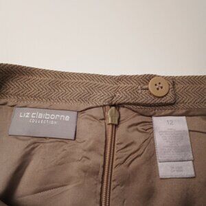 NWT Liz Claiborne Pencil Skirt Size 12 Below The Knee Tan Herringbone Pattern