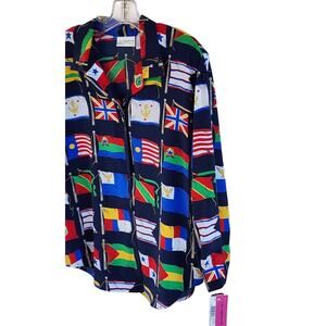 nautical, sailing, cruise wear, resort wear, yacht party, vacation style, preppy chic, coastal grandma, old money aesthetic, retro blouse, vintage style, international flags, summer outfit, statement blouse, 80s fashion, 90s vintage, Liz Claiborne, travel outfit, cruise style, petite blouse, button up shirt, cabin chic, beach cover up, marine style, ocean inspired, classy summer look