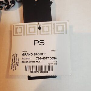 Women's NWT SZ PS Stretch Top Black White Multi GRAND SPORTIF by Liz Claiborne Career Petite