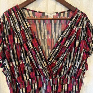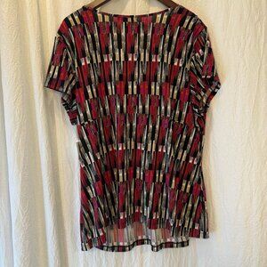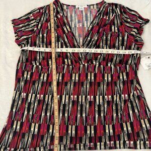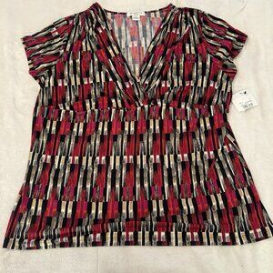 NWT Liz Claiborne Size 2X Red Multicolor Short Sleeve V Neck Pullover Blouse