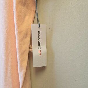 Tags/keywords: Liz Claiborne top, puff sleeve blouse, peach top, rayon nylon blend, women's L top, scalloped sleeve, machine washable top, summer blouse, casual top, feminine style, lightweight shirt, soft fabric, square neckline shirt, office, soft girl, classic, closet staple
