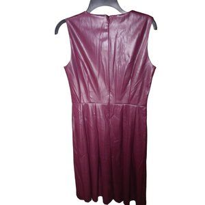 New with tags maroon colored sleeveless back zip pleated lower half dress lightweight the name of the piece is called wine tasting faux leather does have some stretch measurements in pictures