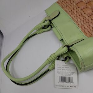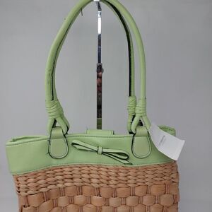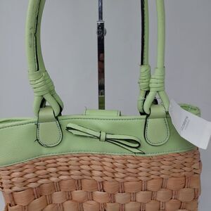 NWT. LIZ Claiborne straw hand bag. new. beautifully simple Liz Claiborne bag. size is approximately 12" x 10". Handle is approximately 20". The green is faux leather. The bag is made from 100% corn husk. new price was $60.00.