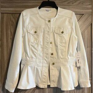 WT Liz Claiborne White Denim Jacket Size Petite Large