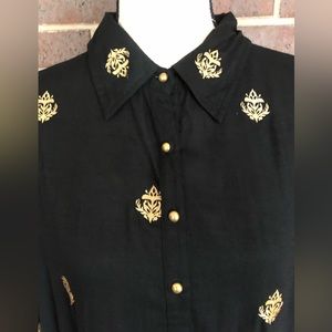 NWT Liza Byrd The Harper Tunic in Black Cotton and Gold Embroidered Crests XXL