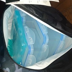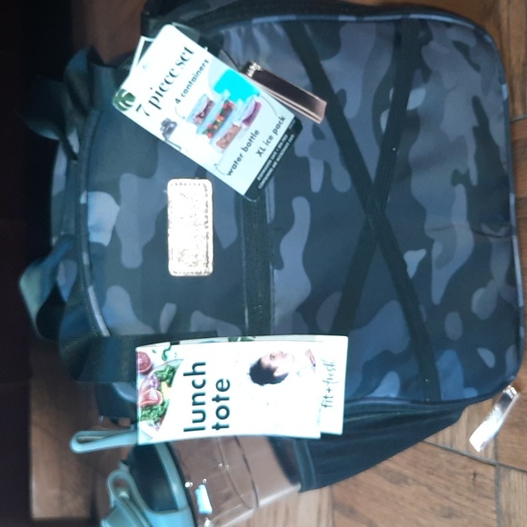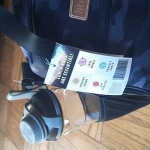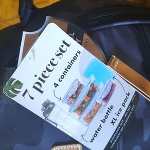 NWT Lunch Backpack. Includes water bottle, Tupperware containers and ice pack. Has zippered front and zips securely to close.