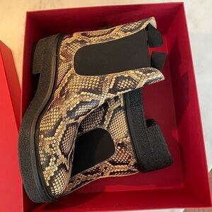 Never worn, in box (not original box) easily slip on and off. Thick black rubber sole with trendy leopard print