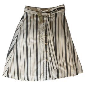 NWT Loft 6 Petite Black & white striped button soft skirt Tie Belt A-Line Lined