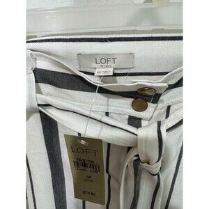 NWT Loft 6 Petite Black & white striped button soft skirt 6P Tie Belt A-Line Lined