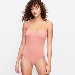 NWT Loft Beach Ribbed V-Bar One Piece Swimsuit In Pink