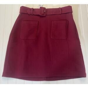 NWT Loft Belted Patch Pocket Skirt Wine Color - Size Women's 0