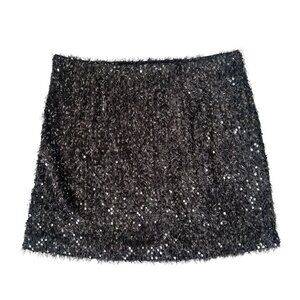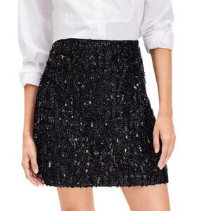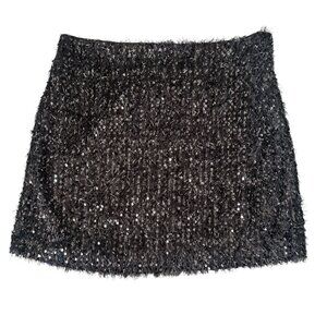 This LOFT Black Mini Skirt is a show-stopping piece. Crafted with a fuzzy textured fabric and adorned with subtle fringe detailing, it features a sequin-lined design and a convenient side zipper for a polished fit. Perfect for parties, nights out, or any occasion where you want to add a touch of sparkle, this skirt combines playful texture with effortless style.
