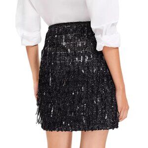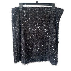 NWT Loft Black Fuzzy Fringe Sequin Lined Side Zip Mini Skirt Size 14 Reg. $79