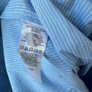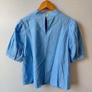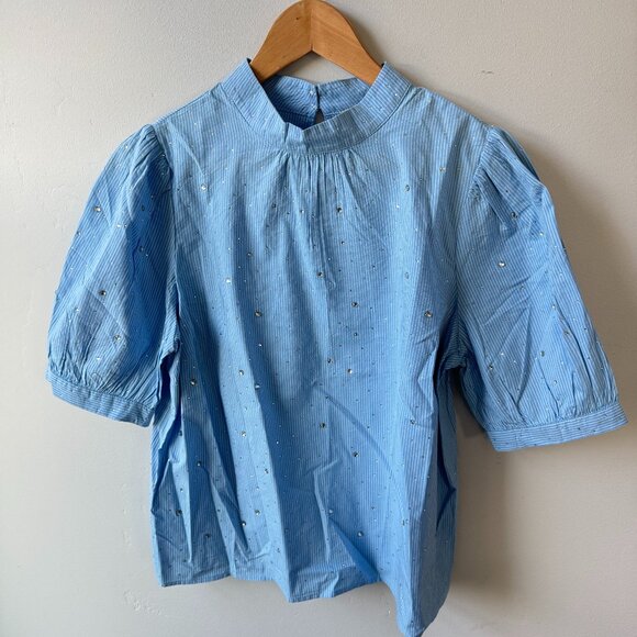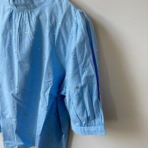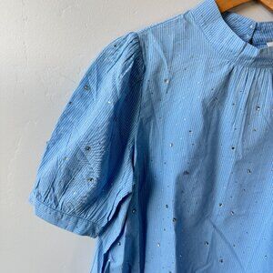NWT Loft Blue White Striped Short Puff Sleeve Blouse Glitter Dots Cottagecore