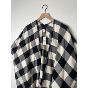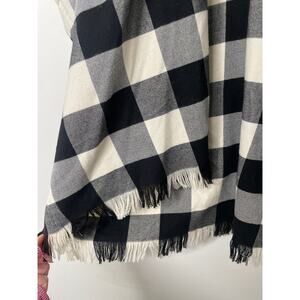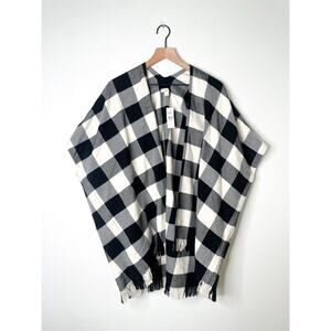 NWT Loft Buffalo Plaid Poncho Sweater XS Small Black White Western Fringe Flowy