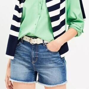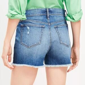 NWT Loft Denim Cut Off Shorts Womens 27 Dark Wash High Rise Raw Hem Distressed