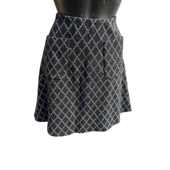 NWT Loft Women's Black & White Elastic Waist Pull On Diamond Print A-Line Skirt
