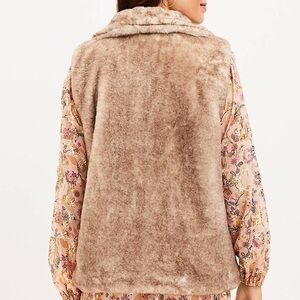 NWT Loft Faux Fur vest neutral cream gray with pockets vegan hidden closure