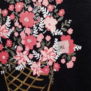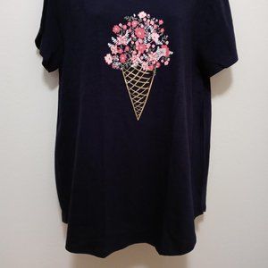 NWT Loft Floral Gold Cone Navy Tee 100% Cotton