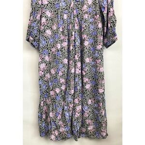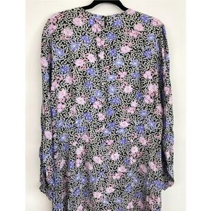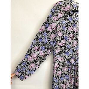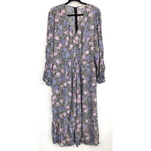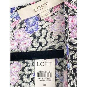 NWT Loft Floral Ruched Long Sleeve Midi Dress, Black Pink Blue - Size 18