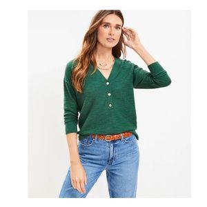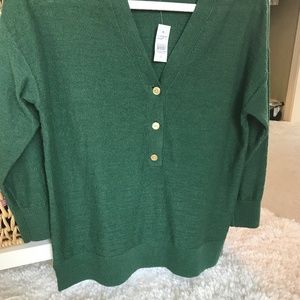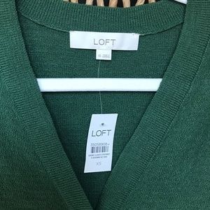 Purchased from Loft, never worn, tags still attached. Doesn’t fit and didn’t realize it was final sale so I am unable to return. Sleeves are 3/4 length. Gold buttons on the front. Color is mystic forest. Size XS.