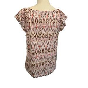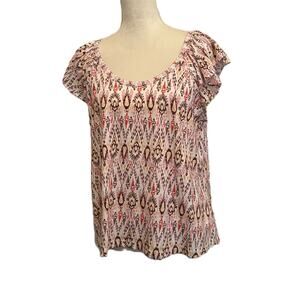 NWT Loft Ikat Ruffle Cotton Boho Look Scoop Neck Relaxed Top Size Large