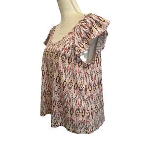 NWT Loft Ikat Ruffle Cotton Boho Look Scoop Neck Size Large
