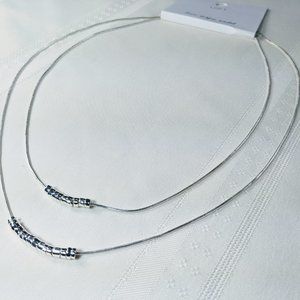 NWT Loft Metallic Beaded Layered Necklace Set Silver Tone