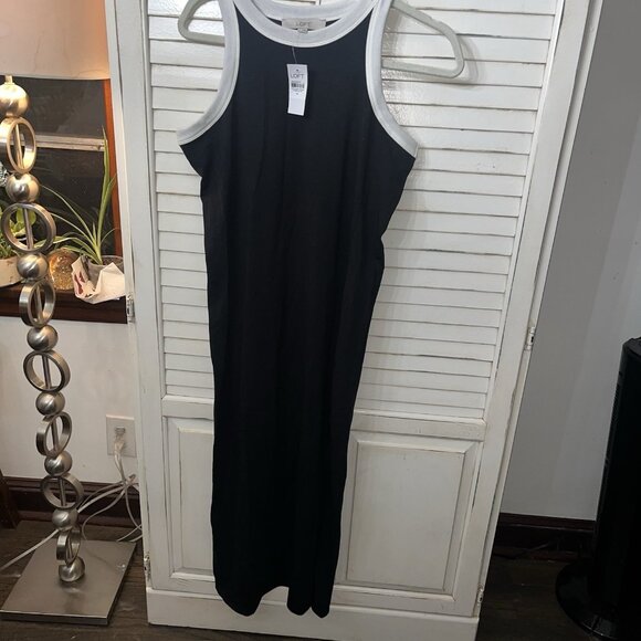 NWT Loft Modern Jersey Racerback Fitted Bodycon Maxi Black Dress Medium