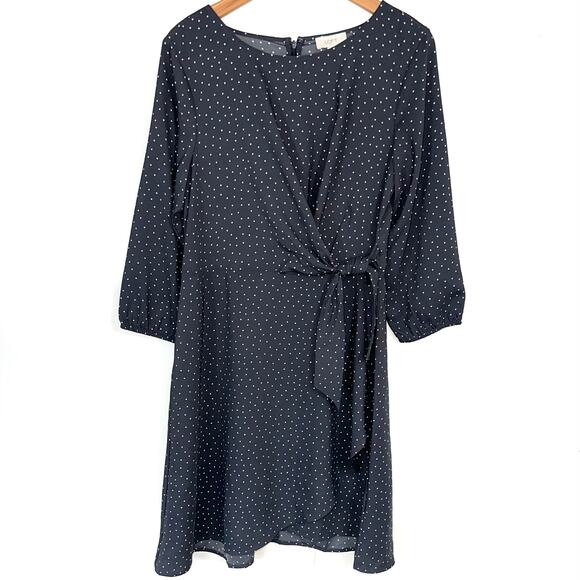 NWT Loft Outlet Grey & White Polka Dot Faux Wrap Mini Dress
