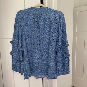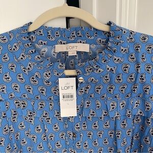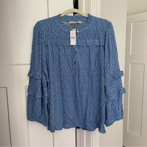 NWT Loft Paisley Ruffle Blue Long Sleeve Blouse