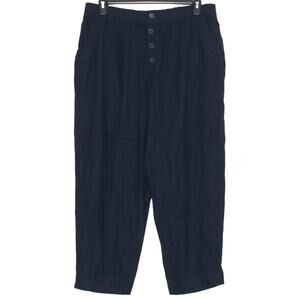 NWT Loft Pants High Rise Straight Linen Crop Minimalist Coastal Grandma Blue XL